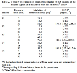 樣品處理:沉積物經(jīng)冷凍干燥、過篩(<2 mm)后,分為三部分:①水提液(elutriate)用于Microtox測定;②有機(jī)溶劑提取物用于SOS chromotest;③整體沉積物用于medaka測定。
