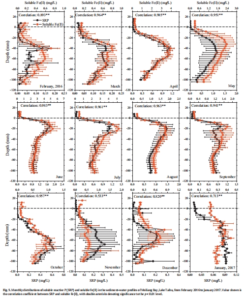 SRP和Fe(II)垂直分布(來自圖5和表3):