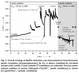雙向微生物電轉移將醋酸鹽氧化生物膜轉化為硝酸鹽還原條件