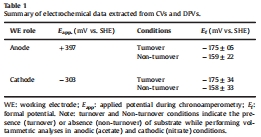 數據:陽極周轉條件下Ef為-175±5 mV,陰極周轉條件下Ef為-175±34 mV;非周轉條件下Ef分別為-159±22 mV和-158±33 mV。