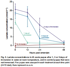 數(shù)據(jù):Table 1顯示蛹在5天浸水內(nèi)全部存活(通氣組與缺氧組無差異),7天后全部死亡;幼蟲最長存活4小時(shí)。