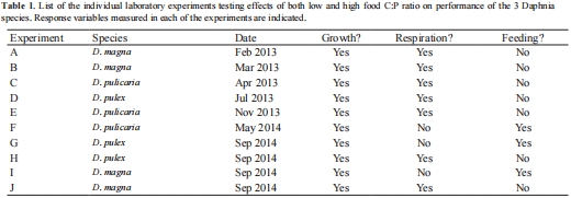Life on the stoichiometric knife-edge: effects of high and low food C:P ratio on growth, feeding, and respiration in three Daphnia species