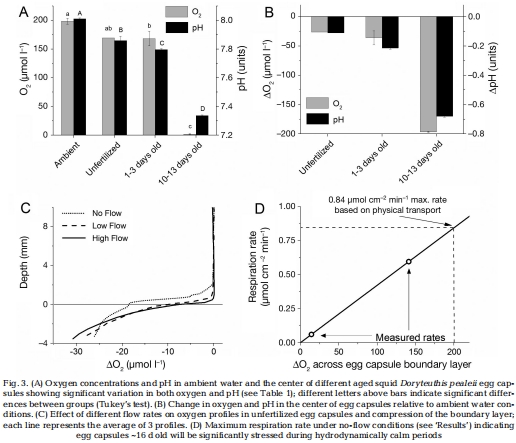 Extreme low oxygen and decreased pH conditions naturally occur within developing squid egg capsules