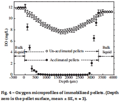 丹麥Unisense微電極系統在本研究中用于高精度測量氧吸收率(OUR)和氧微剖面,其數據在揭示固定化顆粒代謝特性中具有核心研究意義: