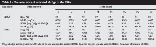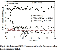 數據:Fig. 6 顯示SBR-1添加顆粒后出水NH?-N降至5.67 mg/L(達標),平均去除率84.09%,顯著高于SBR-2(67.46%);Table 2 表明兩組污泥特性(MLSS≈4300 mg/L, SOUR≈4.7 mg O?/(g·hr))無顯著差異。