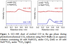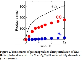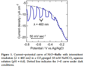 驗證NiO-RuRe雜化光陰極在含水電解質中的CO2還原活性。