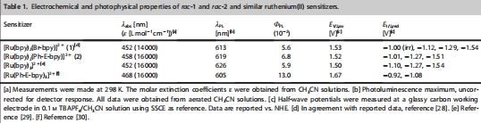 光物理與電化學性質:測量配合物的氧化還原電位、吸收/發射光譜和Stern-Volmer淬滅行為,驗證激發態電子定位到苯乙炔基配體(Table 1)。