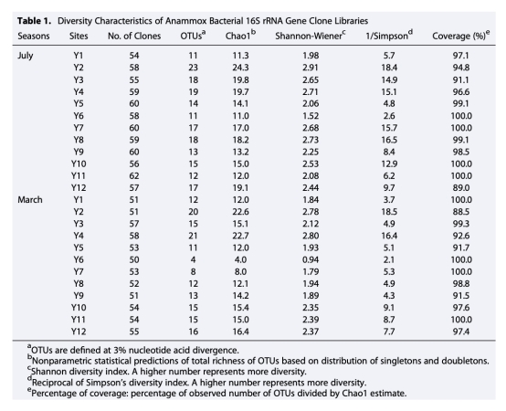 1. anammox細(xì)菌多樣性數(shù)據(jù):來(lái)自16S rRNA基因克隆庫(kù),數(shù)據(jù)體現(xiàn)在表1,以及圖2的系統(tǒng)發(fā)育樹(shù)。研究意義是揭示anammox細(xì)菌群落結(jié)構(gòu)沿鹽度梯度的變化,幫助理解鹽度對(duì)微生物分布的生物地理影響。圖2顯示了群落組成的系統(tǒng)發(fā)育關(guān)系。