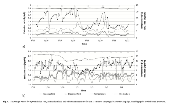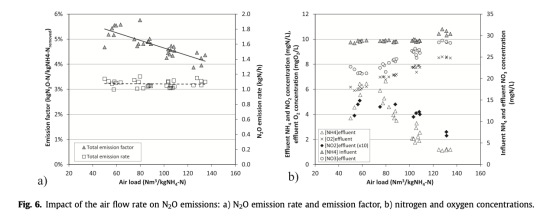 2 溶解N2O占總排放的20%至46%,取決于溫度和曝氣流量,強調(diào)需同時量化氣體和液體通量以準確評估排放。