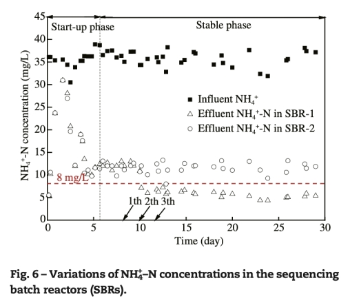 5 SBR性能數據:來自圖6和表2,顯示投加顆粒的SBR-1在低溫下NH4-N平均去除率84.09%(出水5.67 mg/L),顯著高于對照組(67.46%,出水11.59 mg/L)。研究意義是驗證固定化顆粒實際應用效果,為低溫污水處理提供技術支撐。