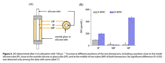 2 DO分布:數(shù)據(jù)來自圖3,顯示培養(yǎng)4天后生物反應(yīng)器中不同位置的氧氣濃度。研究意義在于證明氧氣梯度影響細(xì)菌分布,D-BNC生物反應(yīng)器在內(nèi)外管位置DO更高,導(dǎo)致更均勻的BNC形成。