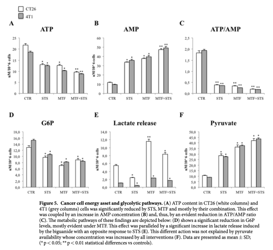 糖酵解和氧化磷酸化的不同靶點導致二甲雙胍和饑餓在結腸癌和乳腺癌中的疊加效應