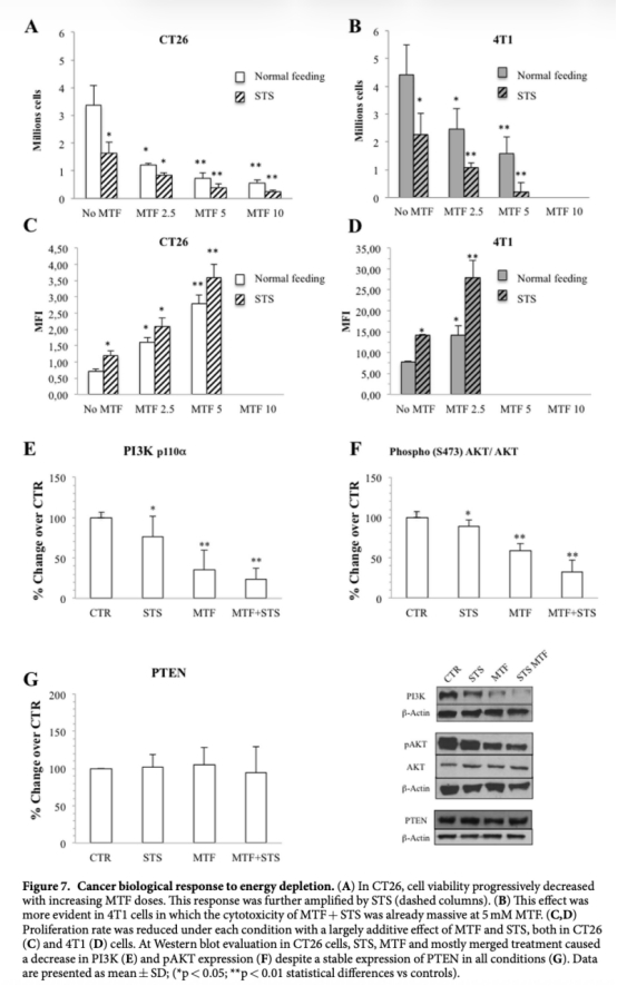 研究得出結論:結合二甲雙胍和短期饑餓通過靶向糖酵解和氧化磷酸化的不同途徑,附加性損害癌癥能量代謝,導致嚴重ATP耗竭、氧化損傷和生長抑制。聯合治療在體內幾乎廢除腫瘤生長,在體外引起細胞死亡和增殖減少,表明能量代謝是抗癌治療的有希望策略。這種效應在癌癥細胞中特異,正常細胞反應不同,支持其選擇性。