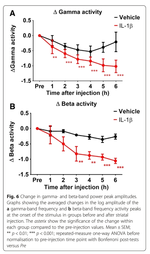 Decreased haemodynamic response and decoupling of cortical gamma-band activity and tissue oxygen perfusion after striatal interleukin-1 injection