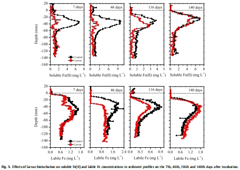 研究意義:直接證明幼蟲的生物灌溉行為將富氧水引入洞穴,顯著增加了沉積物中的氧滲透深度,改變了沉積物的氧化還原條件。這是引發(fā)后續(xù)鐵、磷化學(xué)變化的先決條件。