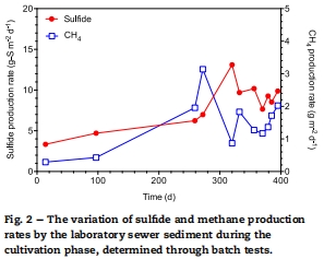 下水道沉積物是硫化物和甲烷的重要來源,硫化物生產速率高于生物膜,甲烷速率與生物膜相當。