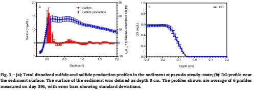 研究意義:揭示硫化物生產集中在表層(0-2 mm),且沉積物整體呈厭氧狀態;這些高分辨率數據直接證明了硫酸鹽還原的活躍區域,并幫助計算硫化物生產活性(通過擴散反應模型)。
