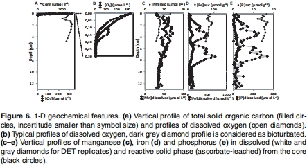 揭示生物活動對微觀環(huán)境的改造:Unisense電極獲取的氧氣剖面并非全部符合經典的指數衰減模型。部分剖面在深處出現非典型的平臺或升高(圖6b中深灰色菱形曲線)。這種異常直接證明了生物灌溉(由宏觀動物如Hediste diversicolor引起)將氧氣輸送到沉積物更深部,創(chuàng)造了局部的氧化微環(huán)境。盡管這種氧化作用持續(xù)時間短,但Unisense數據敏銳地捕捉到了這種動態(tài)過程,表明沉積物化學環(huán)境并非靜態(tài)分層,而是被生物活動持續(xù)塑造的。