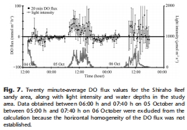 DO通量:通過渦度相關測量,顯示夜間O?吸收(平均~5 mmol m?2 h?1),白天O?釋放(最高~24 mmol m?2 h?1)(圖7)。