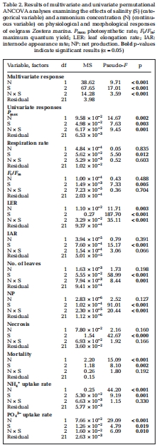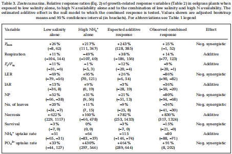 低鹽和高NH??可用性對鰻草的應激會產生交互作用(非簡單加和)。