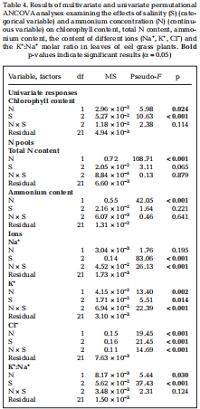 統計分析:采用置換多變量和單變量ANCOVA,檢驗鹽度和NH??的主效應及交互作用,并通過自舉法評估協同效應。