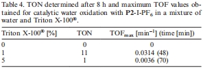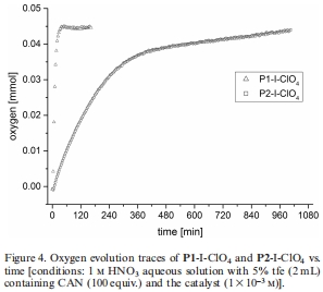 催化性能評估:在化學驅動的水氧化體系(以硝酸高鈰銨CAN為氧化劑)中,比較懸掛配合物(P2-I)與參考配合物(P1-I)的催化活性(轉換數TON、轉換頻率TOF)和穩定性。