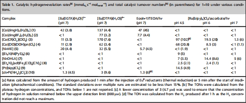 熱化學條件:使用兩種銪(II)絡合物(EuII-EGTA和EuII-DTPA)作為還原劑,在pH 7.0的緩沖液中測試催化劑活性。這兩種絡合物提供不同的還原驅動力(約0.4 V和0.66 V)。