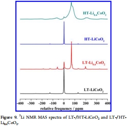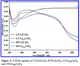 電子性質(zhì)分析:通過紫外-可見光譜(UV-Vis)、傅里葉變換紅外光譜(FT-IR)、X射線光電子能譜(XPS)、磁性測量、7Li核磁共振(NMR)等評估脫鋰對帶隙、Co-O鍵共價(jià)性、空穴濃度等的影響。