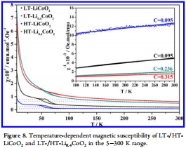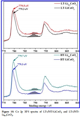 磁性測量:脫鋰后有效磁矩(μB)增大(LT相從0.33升至0.88,HT相從0.33升至0.70),表明空穴濃度增加。研究意義:量化空穴載流子濃度,與活性正相關(guān)。數(shù)據(jù)來自圖8。