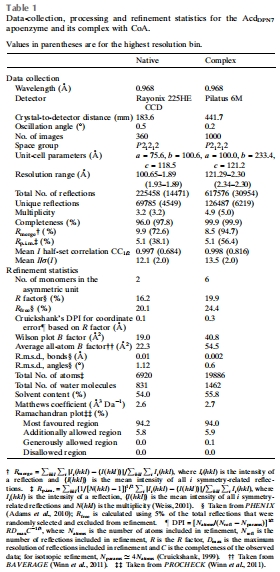 研究意義:首次揭示AcdDPN7的原子結構,證實其屬于Acd超家族但缺乏催化堿基,為理解功能演化提供結構基礎。數據來自表1(數據收集與精修統計)。