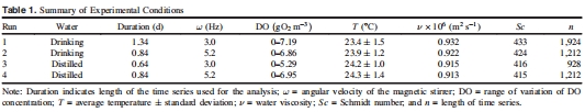 數據內容:腔室內DO濃度隨時間衰減曲線(如實驗1從7.19 gO? m?3降至近0)和溫度波動(±1.5°C)。數據顯示DO下降速率隨攪拌速度增加而加快。