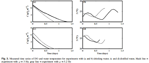 研究意義:直接反映腔室內綜合耗氧過程,是擬合k_t、r_w和S的基礎。溫度變化影響生化速率,需在模型中校正。數據來自Fig. 3a-d(DO和溫度時序曲線)。