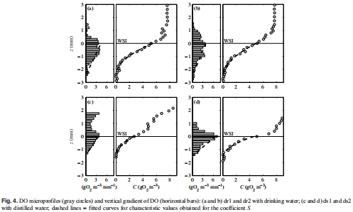 研究意義:提供沉積物局部耗氧的直接證據,驗證S的物理意義;顯示水質對S的影響(蒸餾水S更高)。數據來自Fig. 4a-d(微剖面曲線)和Table 2(S值匯總)。