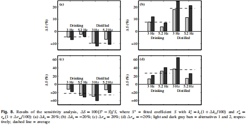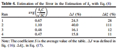 數據內容:k_t或r_w變化±20%導致S變化<13%(Fig. 8);近似J≈k_t C在蒸餾水實驗誤差達32%。