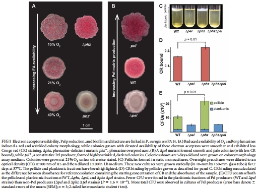 闡明電子受體可用性(如氧氣)如何調節銅綠假單胞菌 PA14 的 Pel 多糖基質生產。