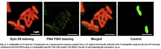 痰液樣本分析:對CF患者痰液進行PNA FISH(肽核酸熒光原位雜交)染色,檢測S. maltophilia的16S rRNA含量,推斷其生長速率。