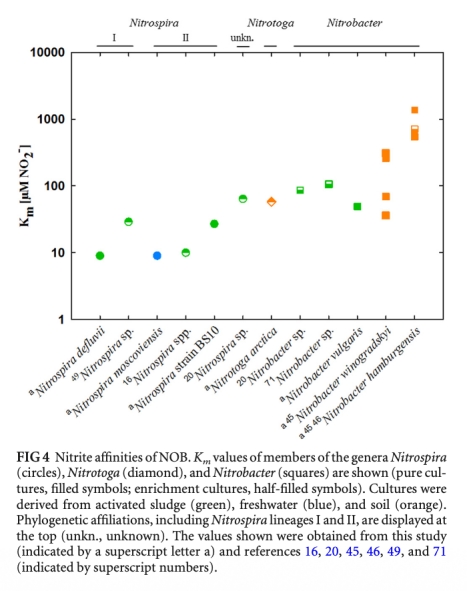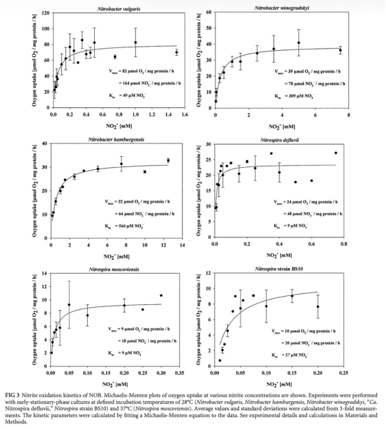 亞硝酸鹽氧化細菌氧化動力學的比較:亞硝酸鹽可用性作為生態位分化的關鍵因素