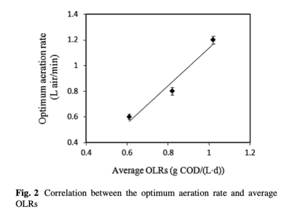 2 數據來自圖2和方程:建立了最佳曝氣速率與平均OLR之間的相關性(A=1.46 OLR-0.33)。研究意義是提供預測模型,便于在實際工程中根據加載速率快速設定曝氣速率,優化操作。