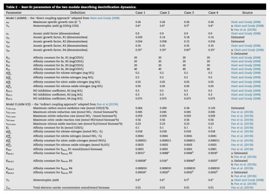 評估廢水處理中生物反硝化中間產物積累建模的兩種概念