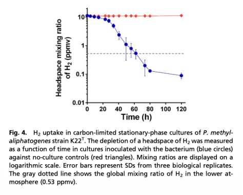 1 酸桿菌通過(guò)高親和力氫化酶氧化大氣H2,在碳限制時(shí)維持持久性,提供維持能量。