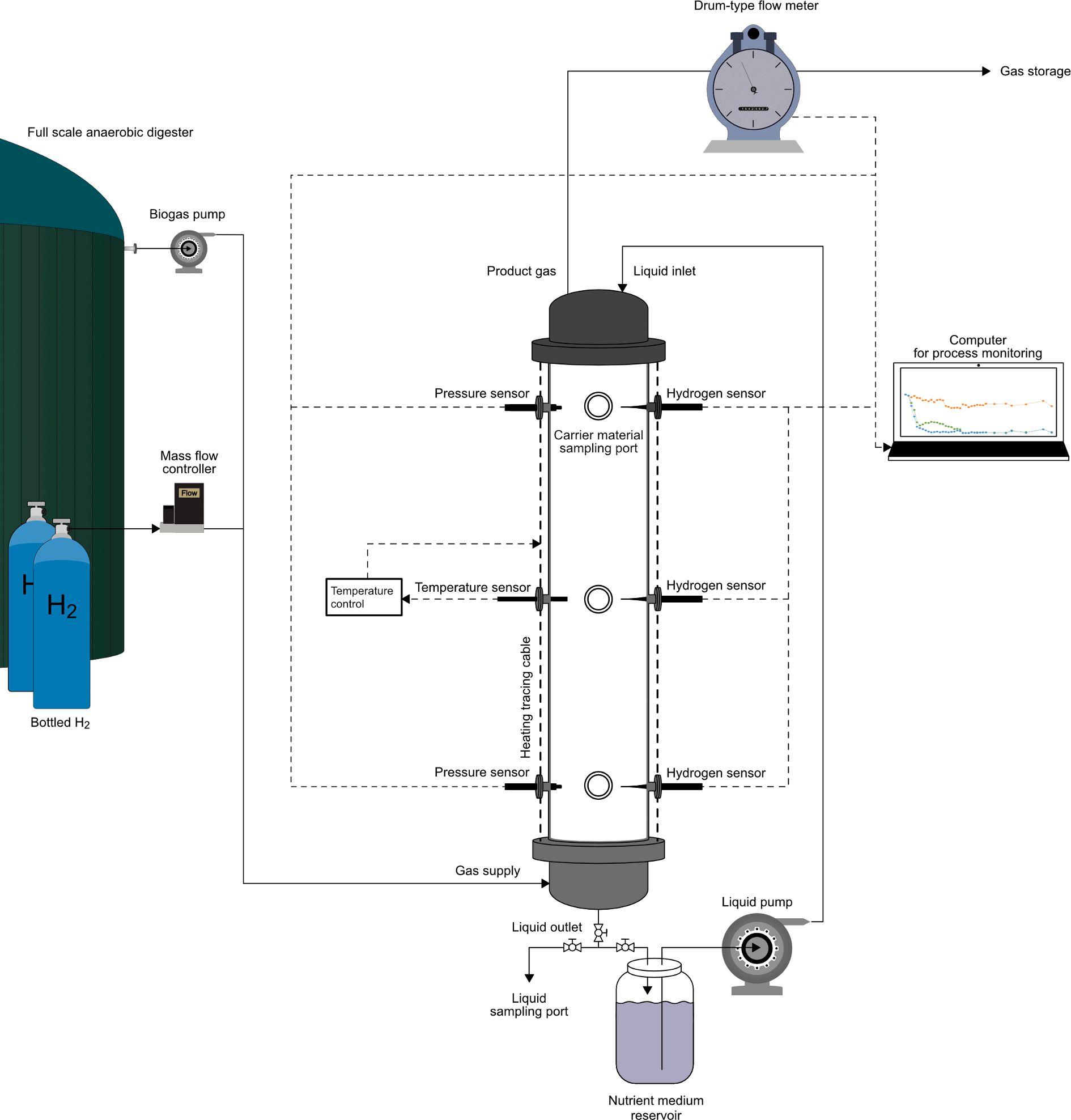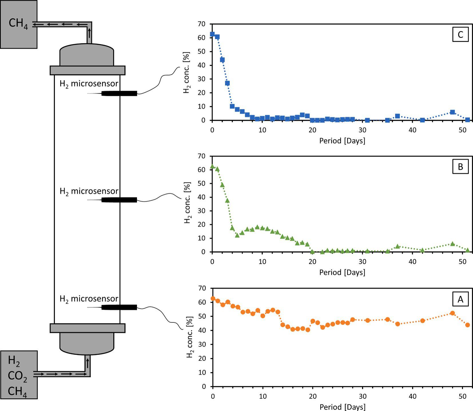 本研究采用一種新穎的方法,通過在滴流床反應(yīng)器(TBR)的垂直軸上安裝多個H2微傳感器,監(jiān)測反應(yīng)器內(nèi)部的動態(tài)過程。該方法在丹麥的一家全規(guī)模沼氣廠中進行了135天的實驗驗證。研究人員通過在TBR的不同高度安裝氫氣微傳感器(unisense),以創(chuàng)建反應(yīng)器內(nèi)的H2濃度剖面。通過持續(xù)監(jiān)測H2濃度,實現(xiàn)對TBR內(nèi)部動態(tài)的實時監(jiān)測和控制,最大限度地利用反應(yīng)器的性能能力,并且能夠在反應(yīng)器性能惡化之前幾天發(fā)出早期預(yù)警。