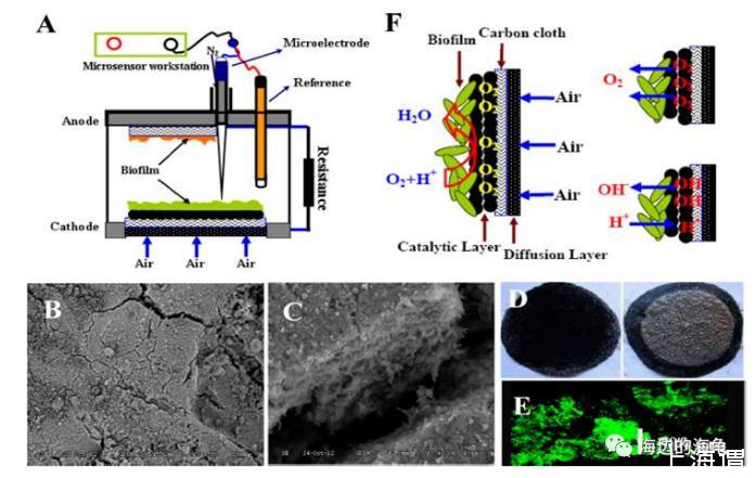 論文3、對陰極和局部生物膜微環境的原位研究揭示了氫氧根離子和氧在微生物燃料電池中的轉運作用