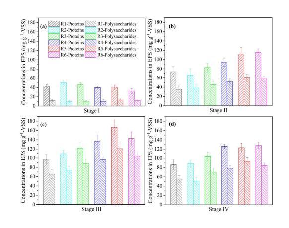 圖3、不同氧分壓下MBfRs中生物膜EPS含量的變化。