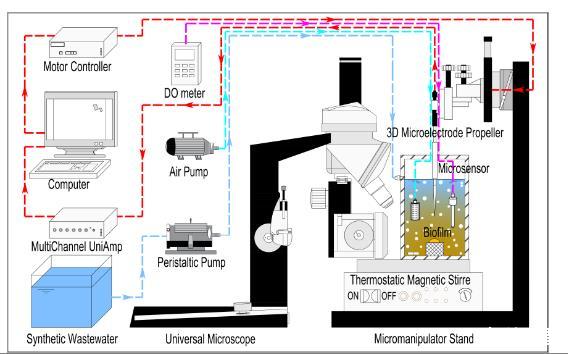 圖3、用于unisense微剖分析系統測量序批式反應器中的DO和N2O濃度示意圖。