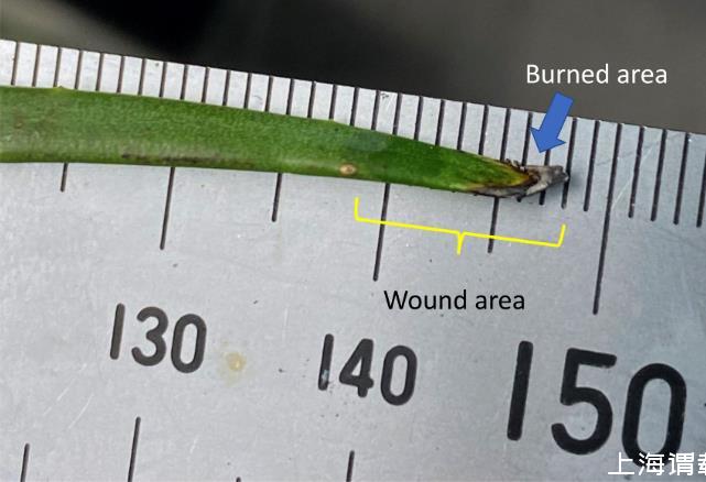 圖2.木立蘆薈葉尖暴露于火焰5秒后的代表性圖像。