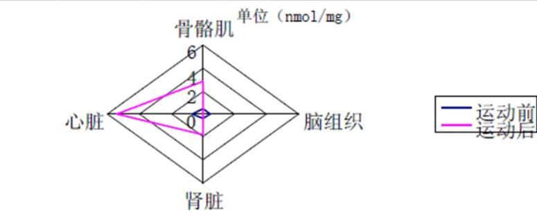 NO是一種內源性血管舒張因子,可以調節內皮細胞、平滑肌細胞和神經細胞的功能,同時參與低氧時細胞內某些低氧敏感基因表達的調節。H2S與NO具有相似的生物學特性,兩者既相互獨立又相互影響,在機體內形成一個復雜的調控網絡。研究表明,急性運動可引起機體分泌NO增多,并引起冠狀動脈及其它血管的舒張,增加心肌、骨骼肌的血流量。本實驗結果發現,一次性大強運動使各個系統(腦組織除外)硫化氫含量有明顯的升高。
