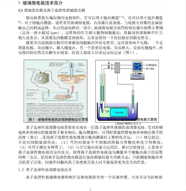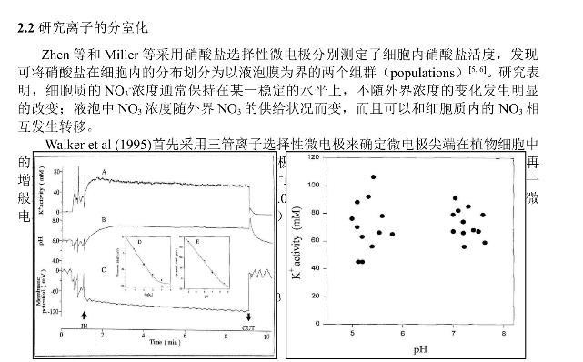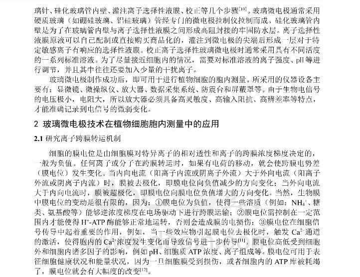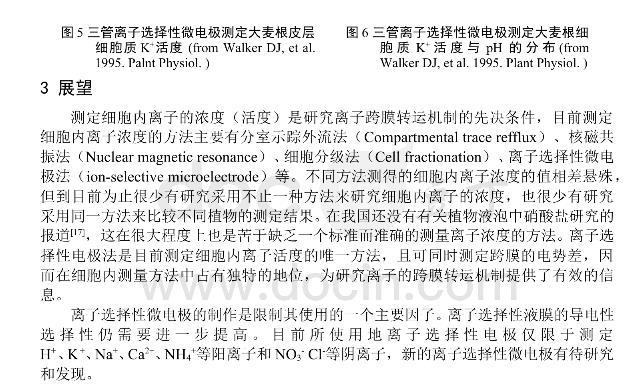 測定細胞內離子的濃度(活度)是研究離子跨膜運轉機制的先決條件,目前測定細胞內離子濃度的方法有很多,不同方法測得的細胞內離子的濃度相差懸殊,但到目前止很少有研究采用不止一種方法研究細胞內離子的濃度,也很少有研究采用同一方法來比較不同植物的測定結果。離子選擇微電極法是目前測定細胞內離子的濃度的唯一方法,且可同時測定跨膜的電勢差,因而在細胞內測量方法占據獨特地位,為研究離子跨膜轉運機制提供了有效的信息。但離子選擇性微電極的制作是限制其使用的一個主要因子,離子選擇性液膜的導電性選擇性有待提高與發現。
