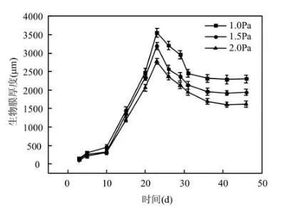 2.1生物膜厚度變化情況
