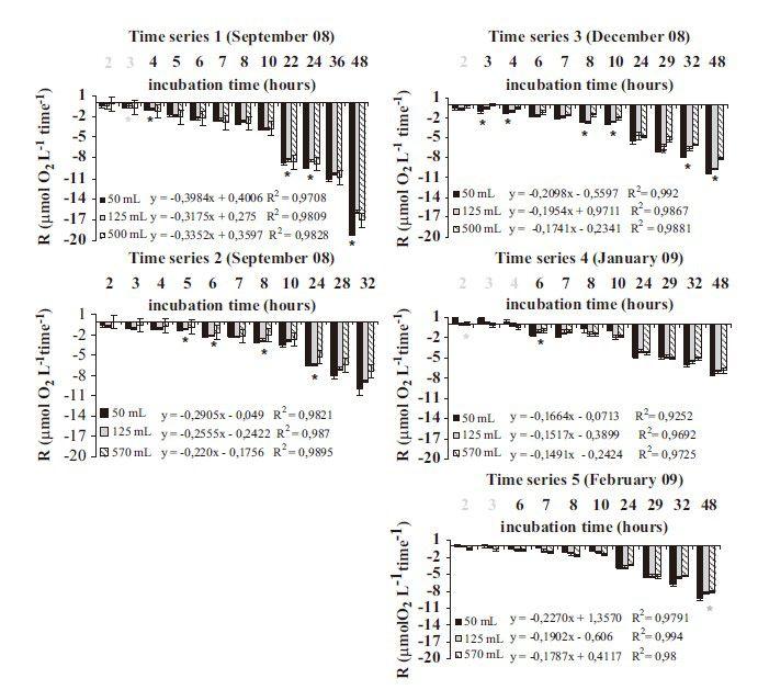 海洋中浮游生物的生產與呼吸平衡的準確測定對于碳預算和全球變化預測非常重要。由于在不同尺度上測量這種平衡存在分歧,導致了對海洋營養狀態的爭議。尤其是在寡營養的開放海域中,24小時的孵化實驗經常顯示出凈異養平衡,但類似的困難也出現在沿海系統中。這些結果因為可能存在的長期孵化時間和所謂的“瓶子效應”而受到批評。為了研究孵化時間和瓶子體積對浮游生物凈代謝測量的影響,在西北伊比利亞沿海系統進行了一系列時間序列實驗。通過標準體外溶解氧濃度變化和(2)氧氣微傳感器每20秒測量一次的氧濃度下降,同時獲得了浮游生物群落呼吸率的測量結果。本研究結果反駁了24小時暗瓶孵化在125毫升體積下系統性偏見的說法,并強調了氧氣微傳感器在研究自然海洋浮游生物呼吸動態方面的有效性。本研究結果對支持使用unisense氧氣微呼吸系統作為測量沿海海洋生態系統中浮游生物DCR的準確工具,并表明它們是評估呼吸率線性的可行選項。對于改進海洋生態系統中浮游生物呼吸作用的測量方法和理解其在全球碳循環中的作用具有重要意義。