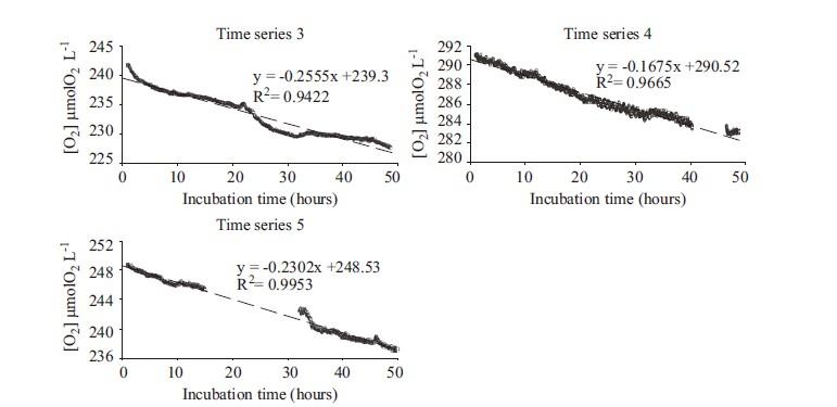 研究結果表明24小時的暗瓶孵化實驗在125毫升的樣本量下,并沒有顯示出系統性的偏差,無論是由于樣本大小、所謂的“瓶子效應”還是氧氣消耗率的非線性變化。通過將Unisense微電級系統連續監測的數據與Winkler方法得到的離散數據進行比較,研究發現兩種方法在測量海洋浮游生物的暗社區呼吸率(DCR)方面是一致的,且微電級系統的數據在統計上與Winkler方法的數據沒有顯著差異。大多數情況下,從最小孵化時間到24小時,實驗觀察到的氧氣消耗保持線性,這支持了之前研究中關于較長孵化時間內氧氣消耗率恒定的發現。強調了浮游生物群落結構和呼吸率變化之間的復雜關系,并表明呼吸率的變化更多地受到生態因素的影響,而不是群體的遺傳組成。